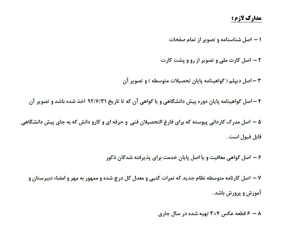 اطلاعیه زمانیندی ثبت نام و مدارک لازم جهت پذیرفته شدگان نهایی ازمون سراسری سال 1392