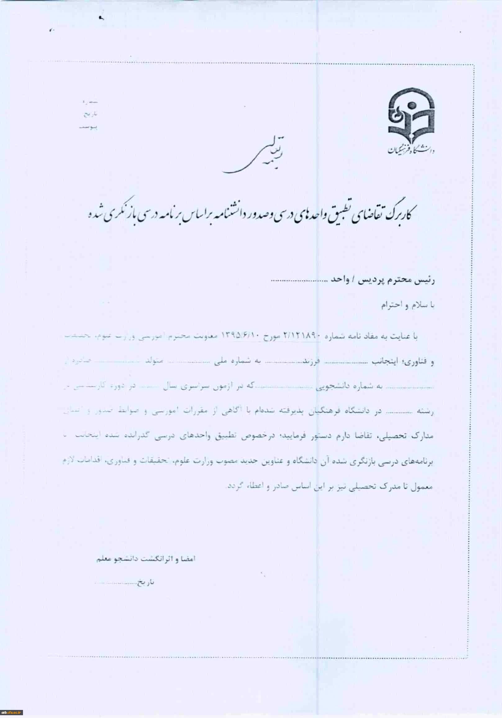 اطلاعیه تطبیق واحد ویژه رشته های دبیری ورودی 91 2