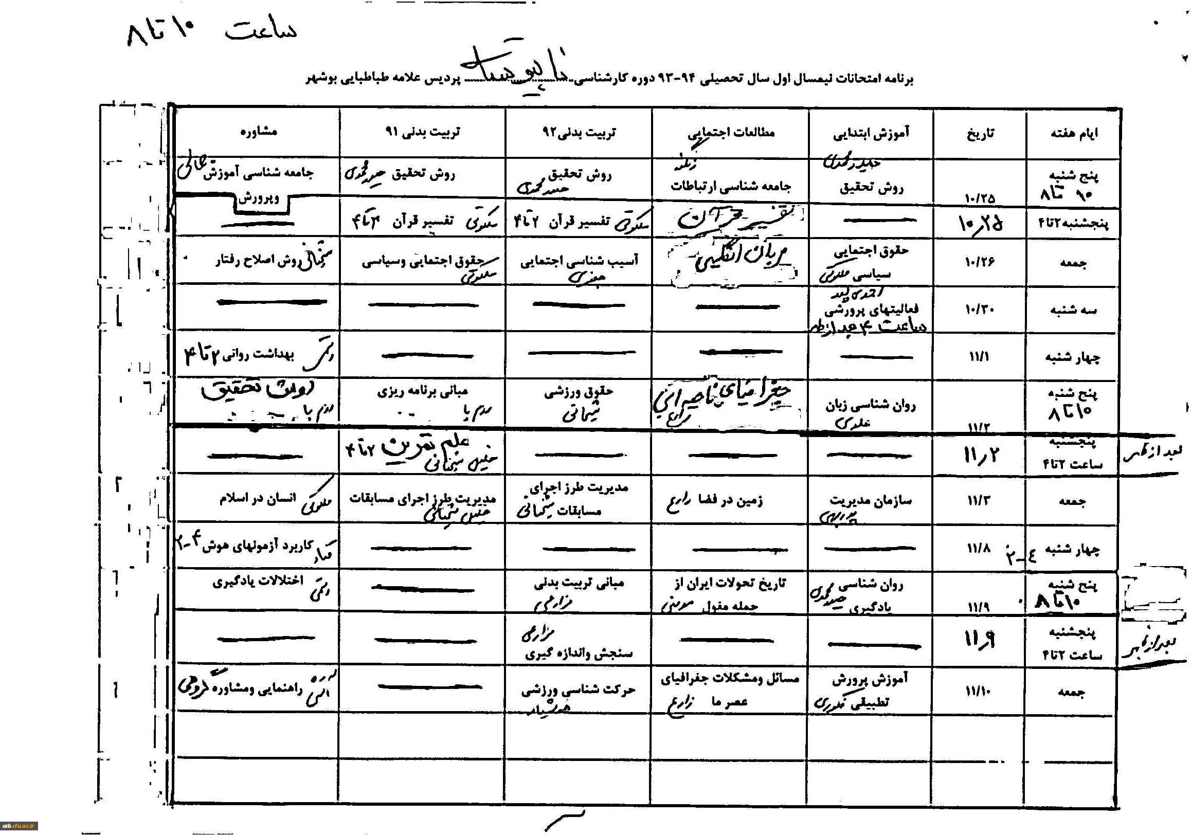 برنامه امتحانات نیمسال اول 93 ناپیوسته