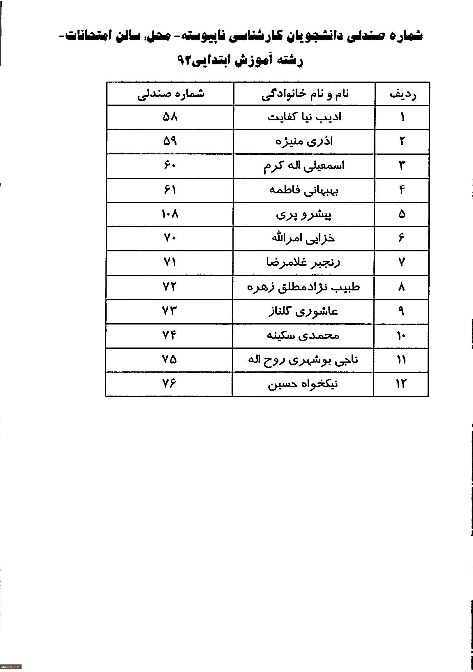 شماره صندلی 931 ناپیوسته