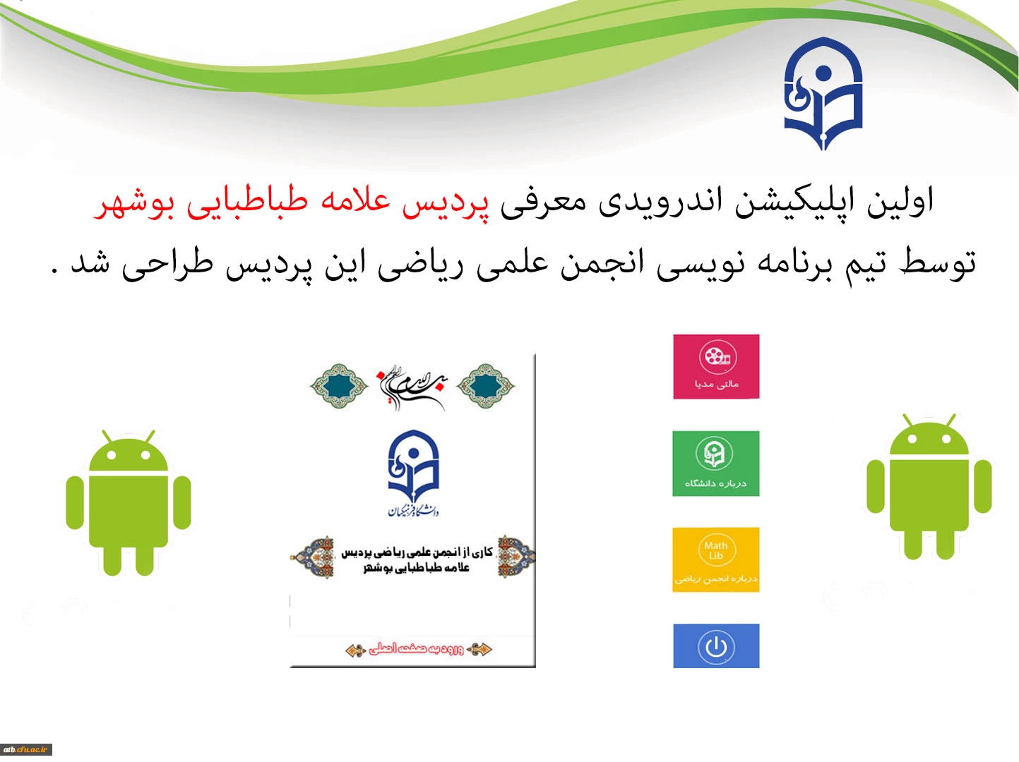 طراحی اولین اپلیکیشن اندرویدی معرفی دانشگاه فرهنگیان پردیس علامه طباطبایی بوشهر توسط تیم برنامه نویسی انجمن علمی ریاضی پردیس